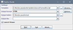 For further details, please see: FlexDoc/Javadoc | Documentation | FlexDoc Doclet | Doclet GUI