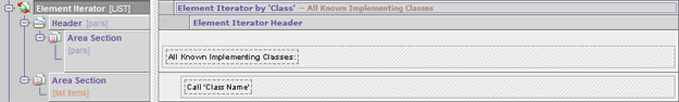 The left pane represents the structural components called sections, which are responsible for most of data processing as well as the generation of integral features of the output (such as paragraphs, tables, lists etc.)