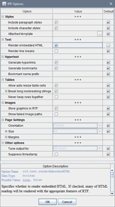 The «Params» button invokes the Parameter Inspector, where you can edit all parameters of the specified main template. The «Options» button invokes the Option Inspector corresponding the selected output format.