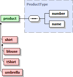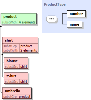 Substitution groups are shown in diagrams:- As chains of member elements, which is controlled by the parameter «DiagramKit | Show in Diagram | Substitution Groups»
