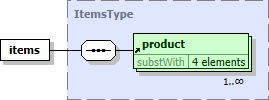 On the left diagram, 'product' is the diagram's root node (i.e. the diagram depicts its content model).