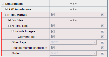 | For Files | Specify for which XML schema files the HTML markup in annotations should be processed. | ||||||||