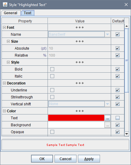 Note that a formatting styles defined in the main template will override any equally-named style found in subtemplates. This applies to the default paragraph style too!